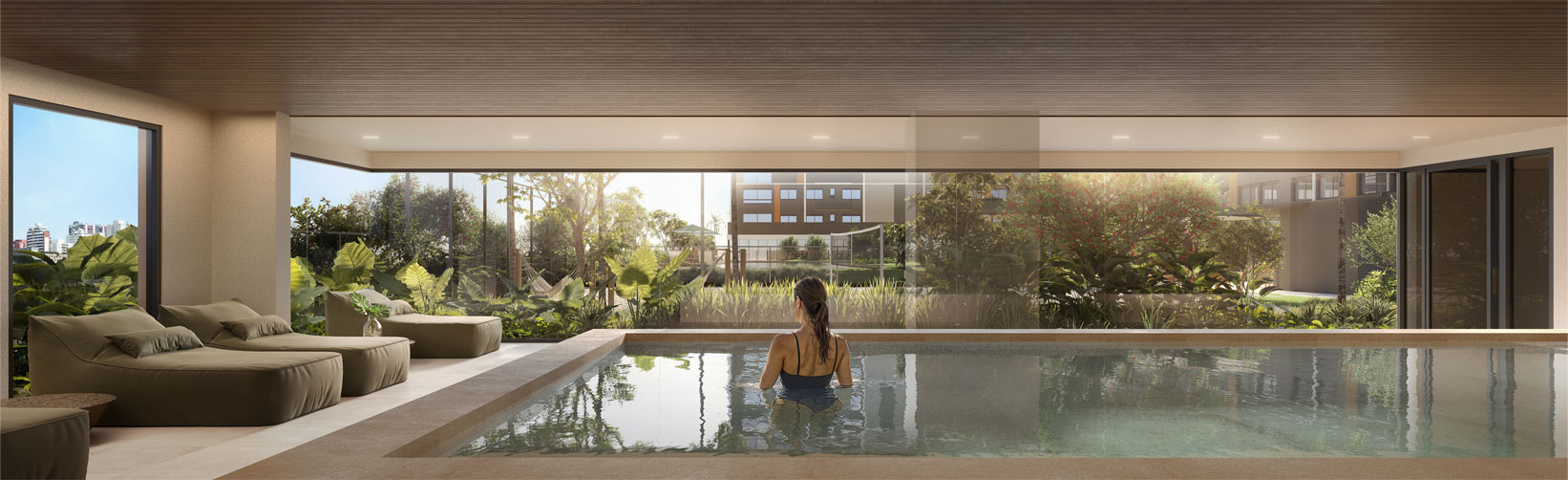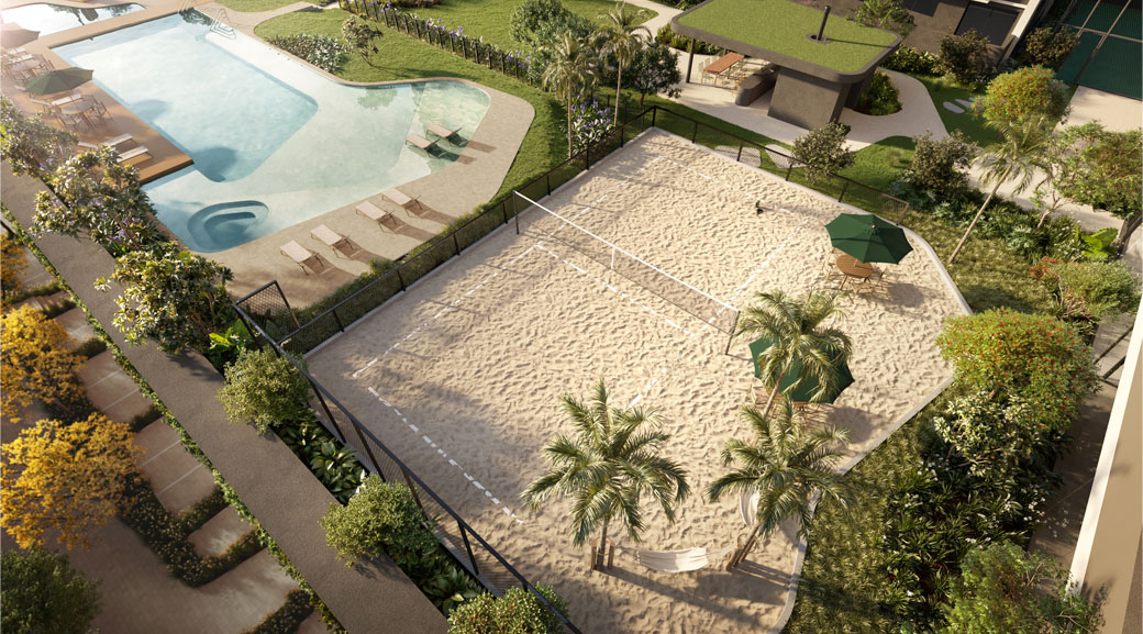 Na área privativa, o projeto aposta em uma infraestrutura robusta, com destaque para uma praça suspensa no 4º pavimento e um clube completo de lazer, esportes, convívio e contemplação.